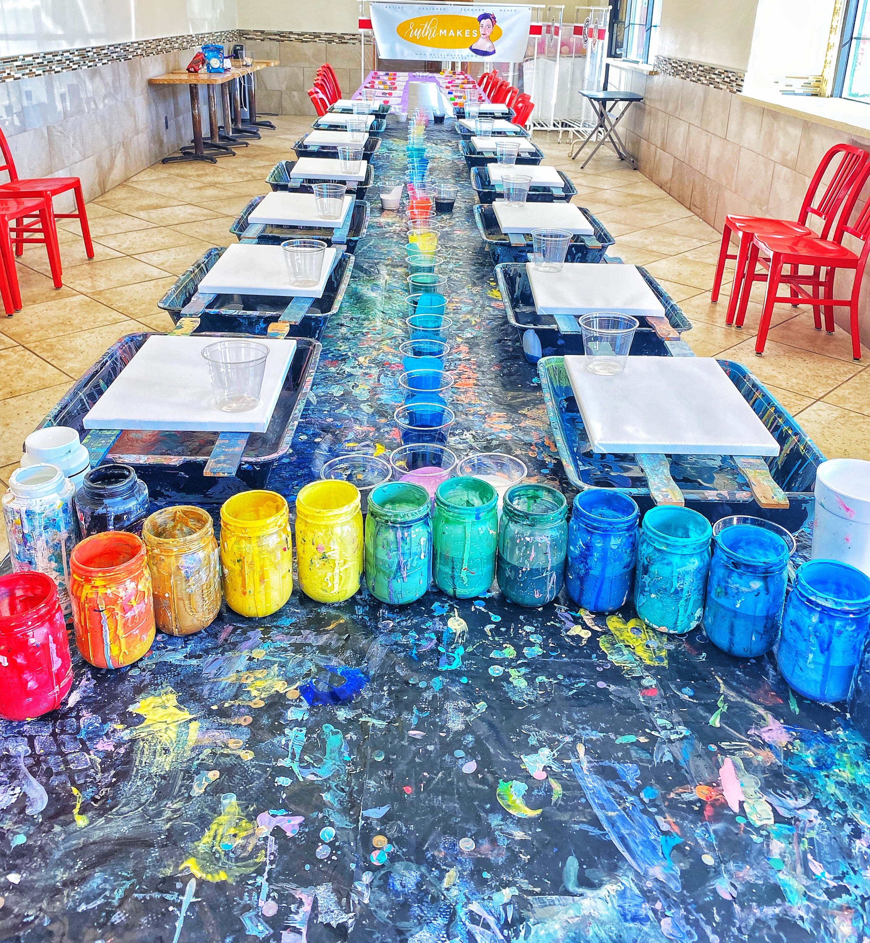 Up to ten people can create for the party price, and whether they are adults or kids doesn't matter to us! Want to add guests? They are $35 per person/up to 15 total guests. Have a bigger party in mind? Contact Ruthi directly to get a customized party package!