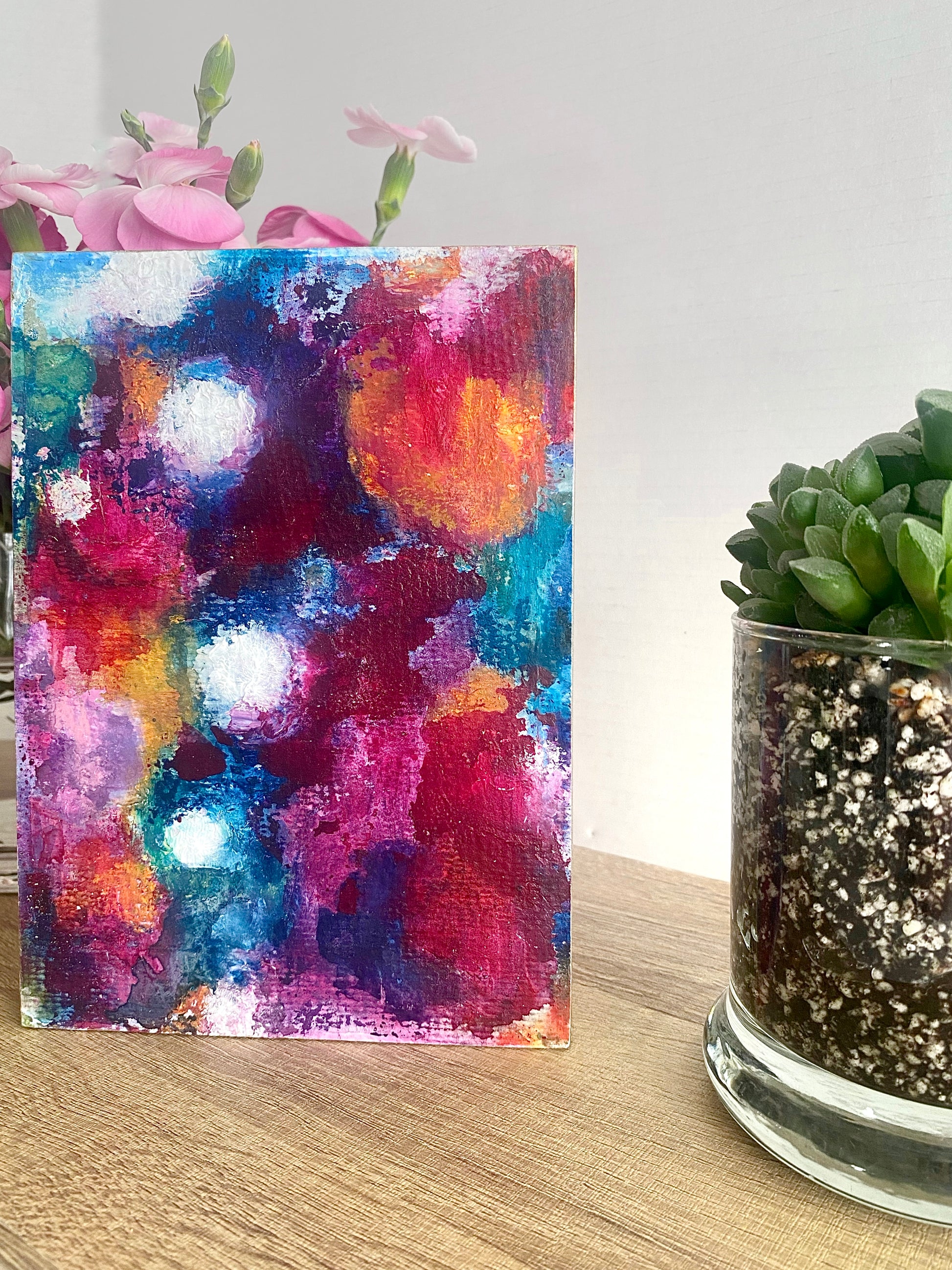 Each piece in this collection is hand painted and one of a kind. Each captures fleeting sparks of happiness and light - fragments of hope.
