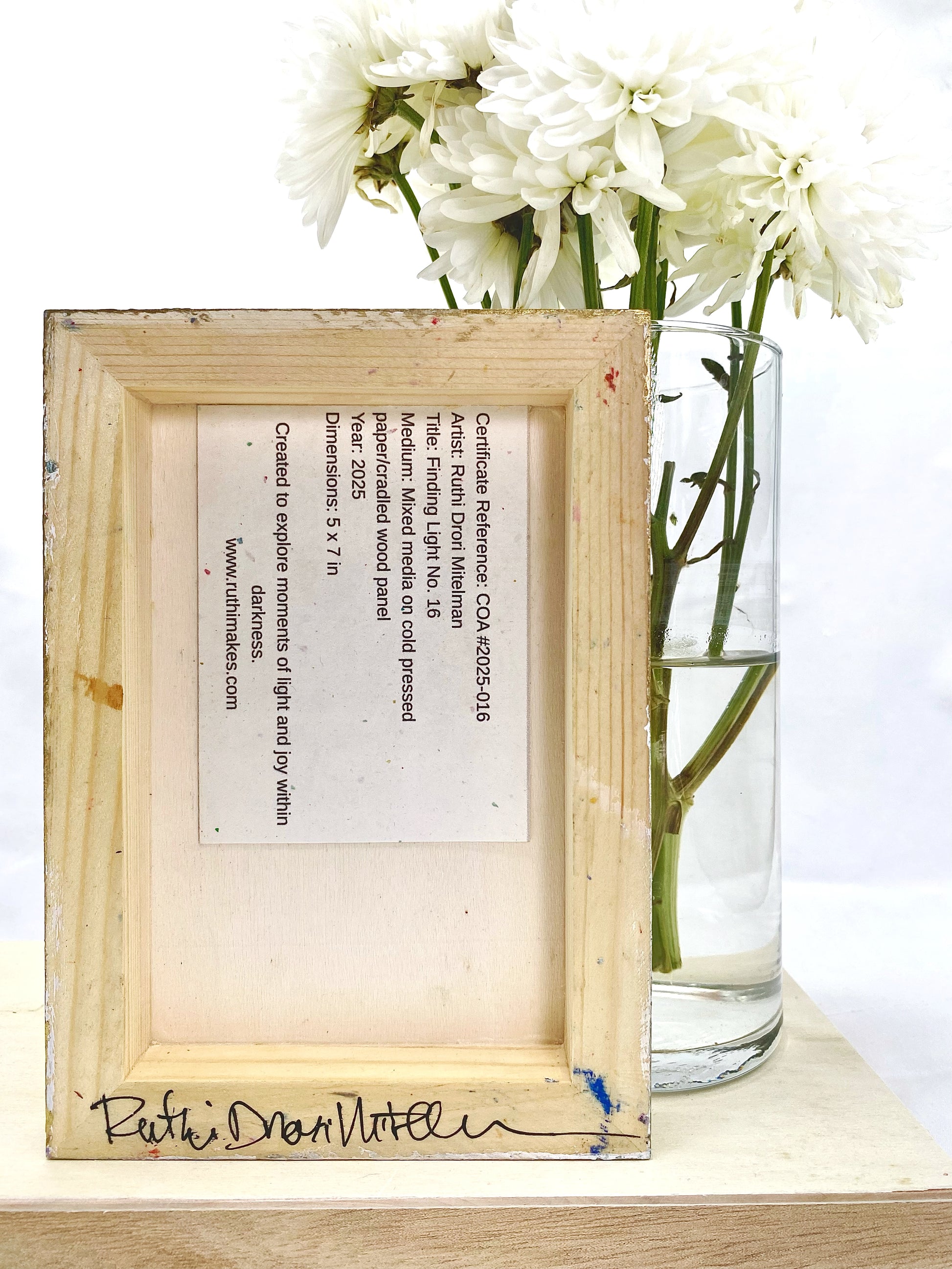 Each piece in this collection is hand painted and one of a kind. Each captures fleeting sparks of happiness and light - fragments of hope.