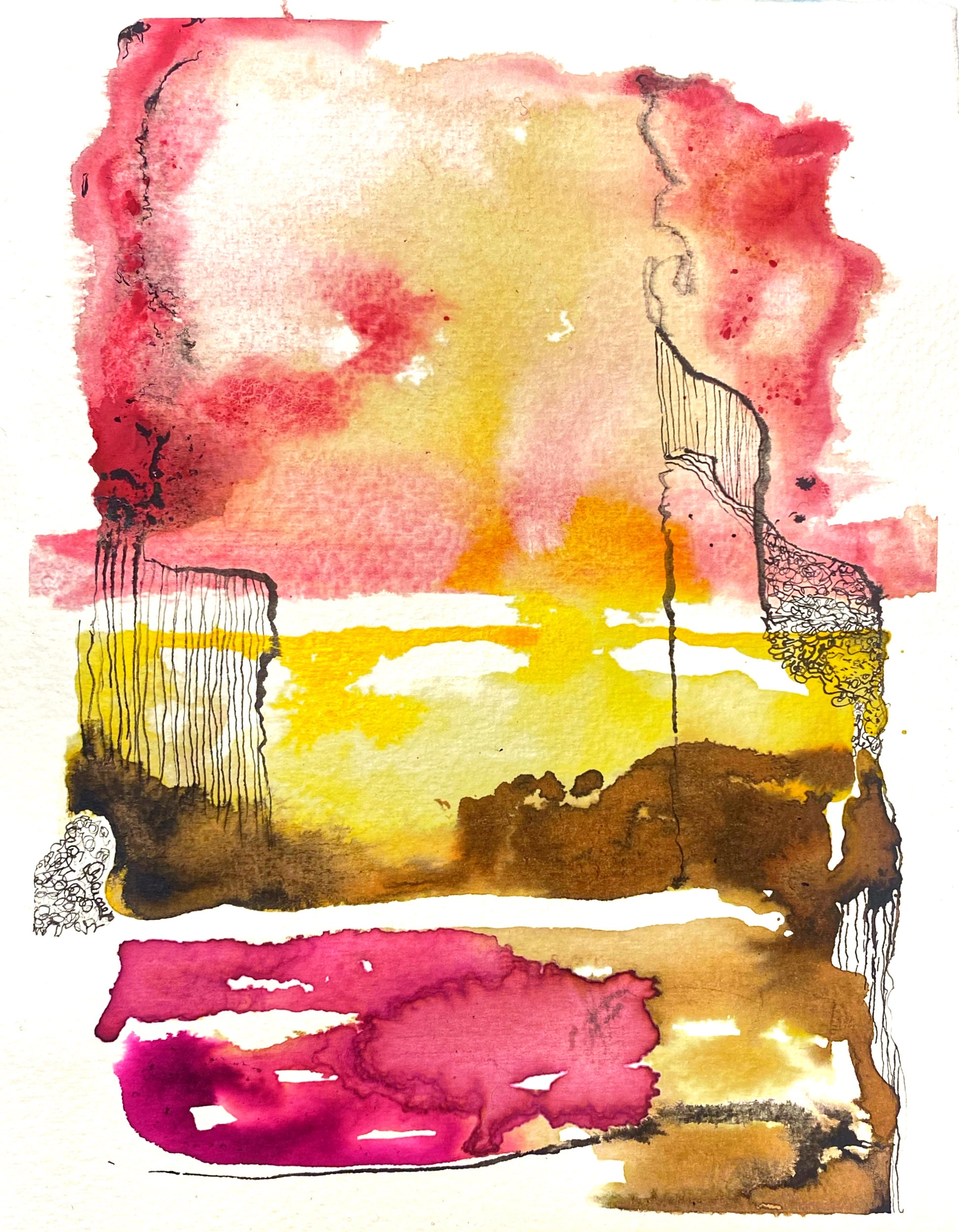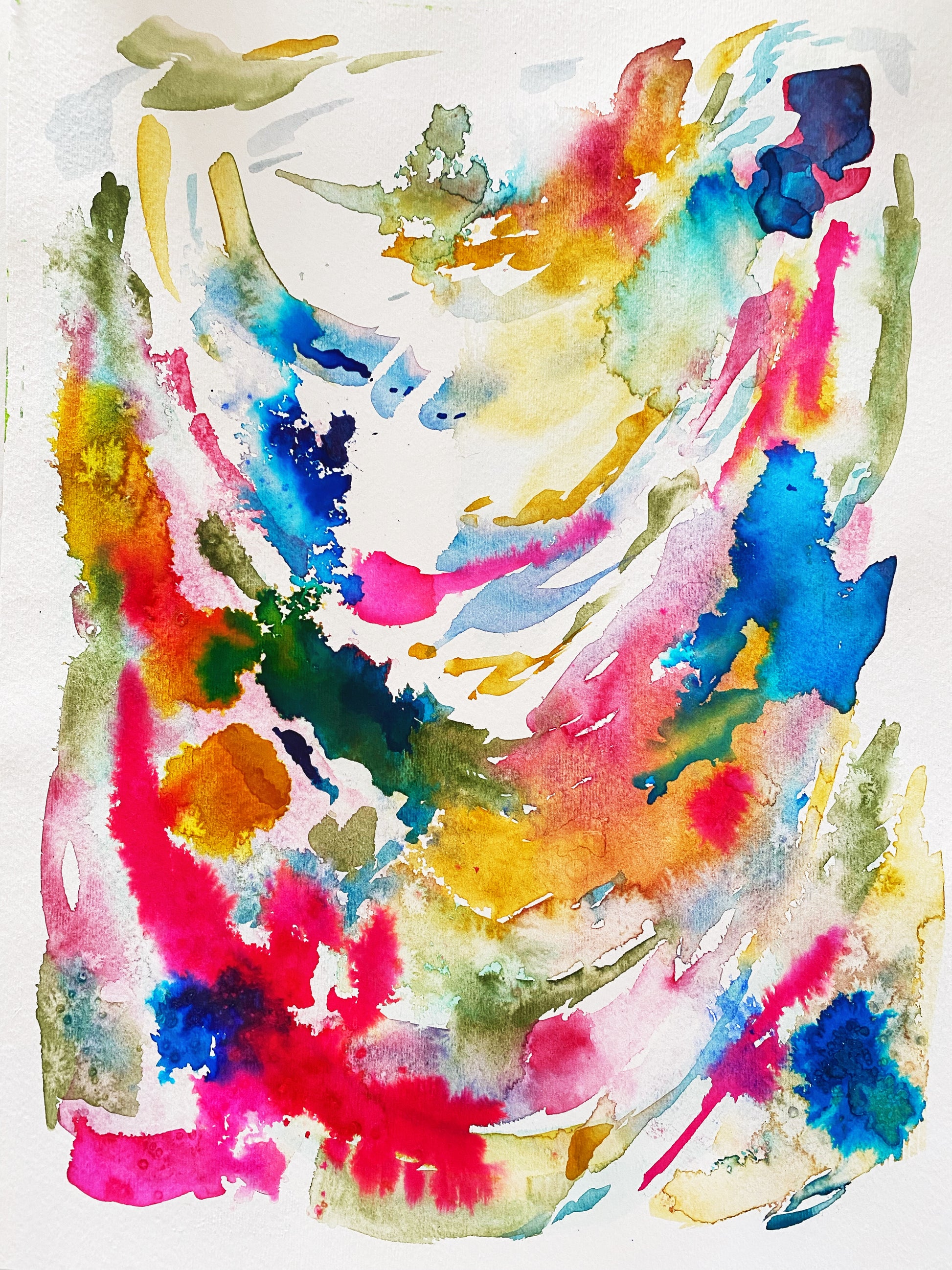 Flowy Abstract Painting is a contemporary art technique that involves painting with liquid watercolors and inks. This technique is often used to create detailed and organic-looking shapes that are difficult to achieve with traditional painting methods. It is fabulous for experimenting with color! Part chemistry lesson, part color theory, totally immersive and cool.