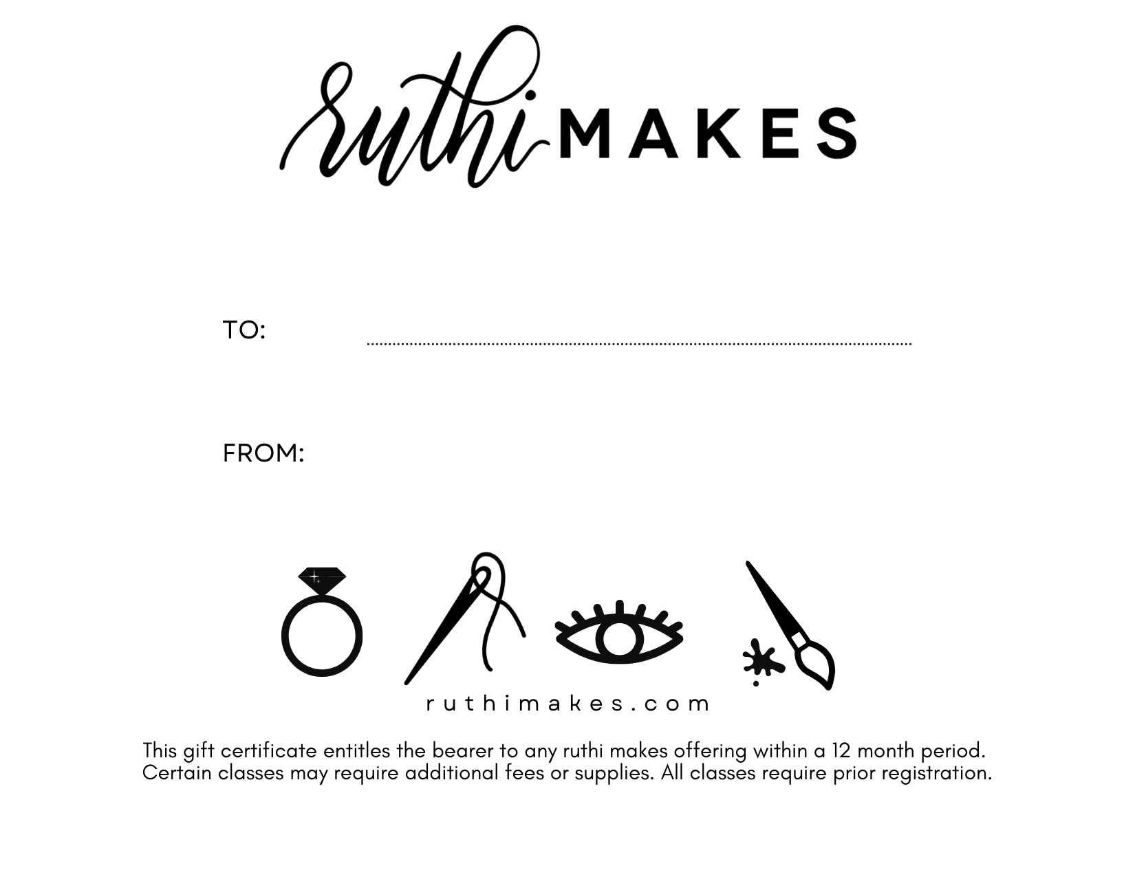 Gift your friends or loved ones a Ruthi Makes gift certificate!